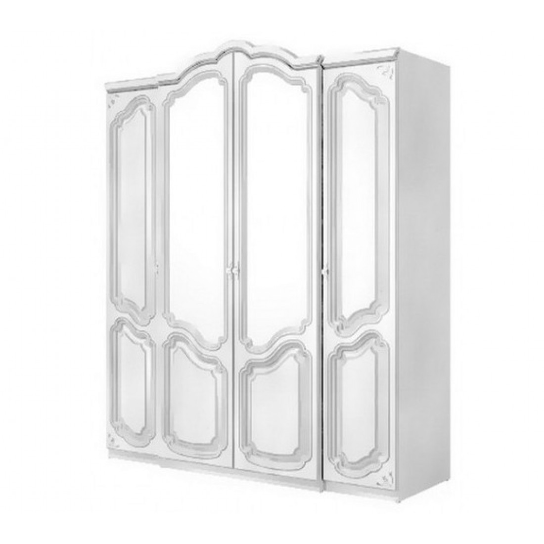 Шкаф для одежды в спальню СП-002-14 серии Орхидея (Мебель-Неман) – потрясающе вместительный, с роскошным классическим оформлением. Глубокая фрезеровка с изящным, витиеватым рельефом добавляет лоска, ощущения благородной антикварности. Купить четырехстворчатый плательный шкаф можно в двух древесных имитациях (более темной черешне с эффектом старения или ольхе с патиной золотом) или великолепном белом глянце.