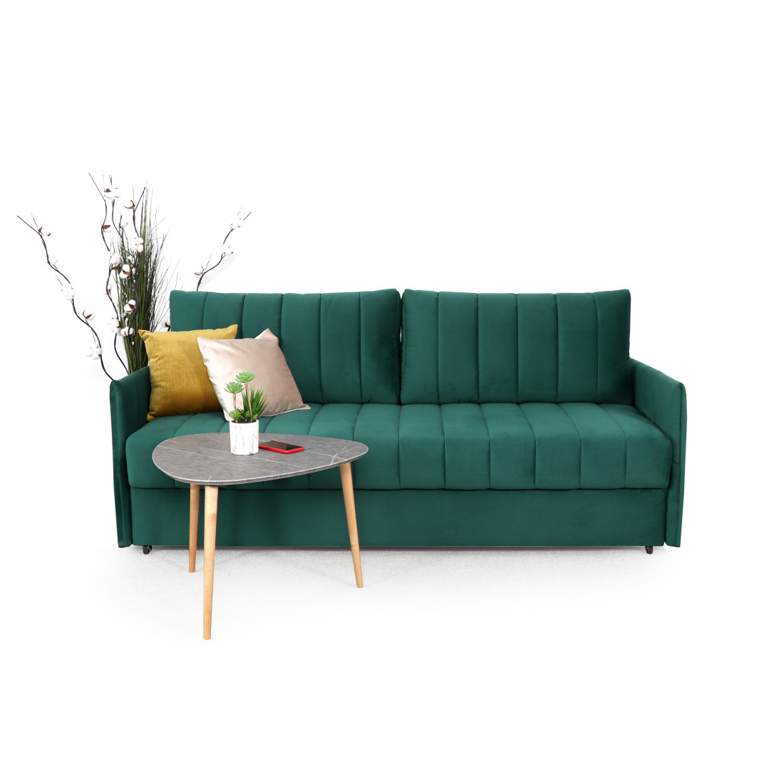 Диван удачно зонирует пространство и дополняет необходимым функционалом. В основании спального места блок независимых пружин для комфортного сна. Вместительный ящик для хранения постельных принадлежностей.