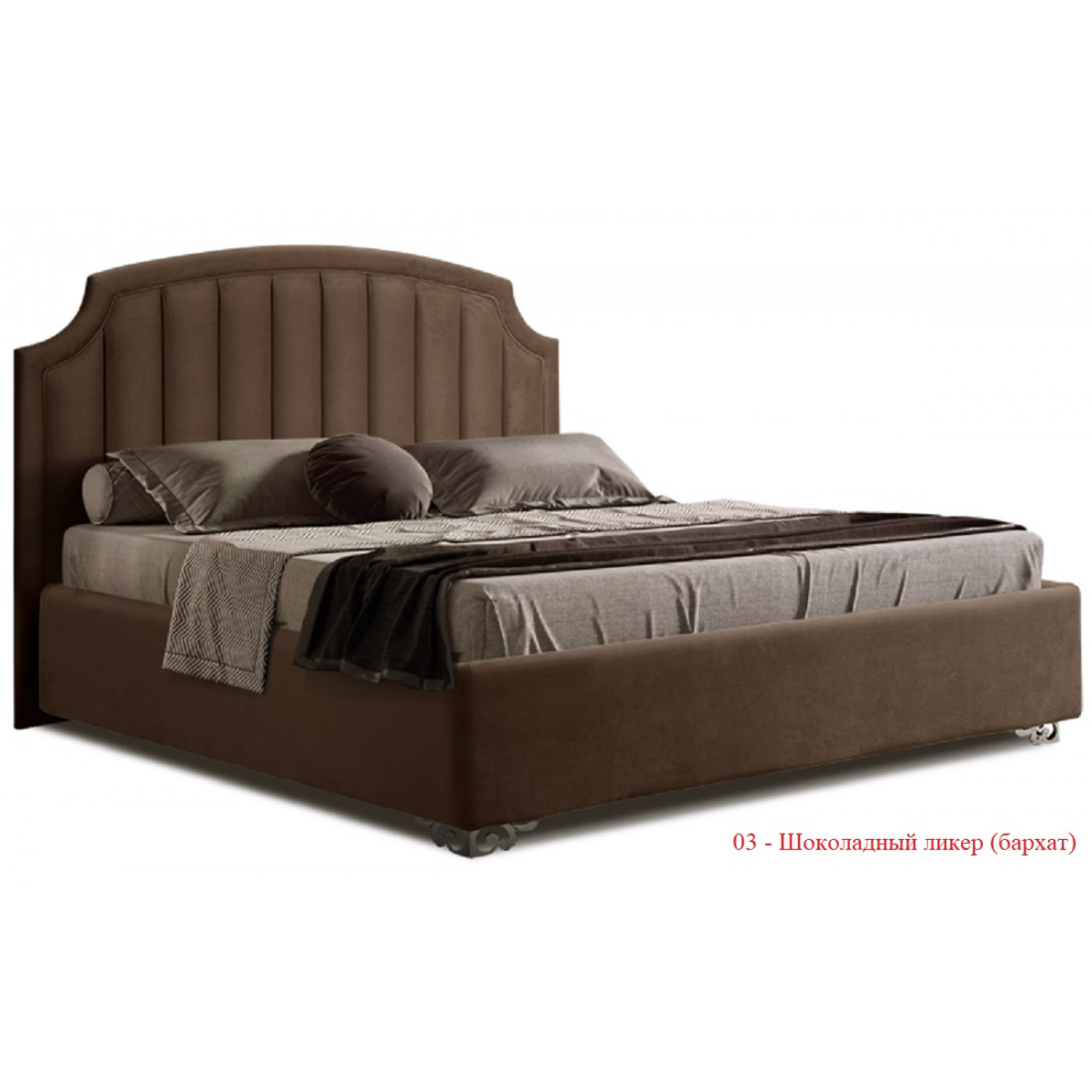 Кровать «Verona» обтянута бархатной тканью и доступна в продаже в трех цветовых решениях: «жемчужный берег», «душистая лаванда» и «шоколадный ликер»: