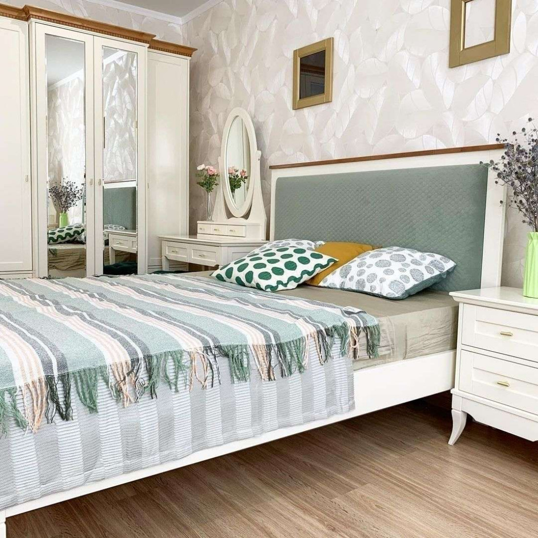 Кровать оснащена ортопедическим основанием для матраса — ламелями.