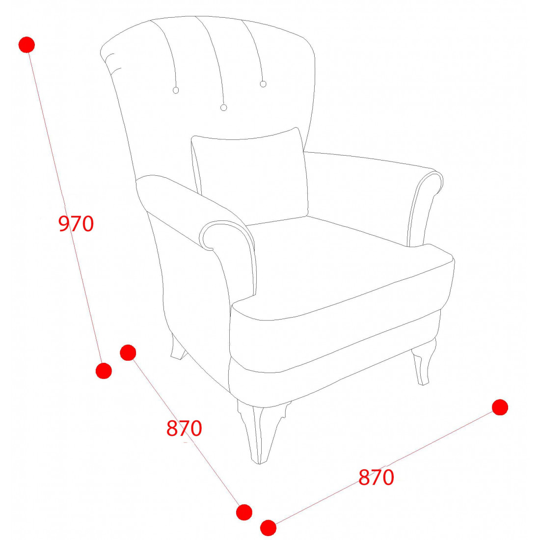 Каркас кресла ASTR-03   древесина твердых пород, фанера, спинка и сиденье на эластичных лентах. Настил сиденья и спинки спанбонд, войлок. Мягкий наполнитель сиденья, кресла фигурный блок из пенополиуретана Н140мм., синтепон. Мягкий наполнитель спинки пенополиуретан. Чехол спинки кресла ткань мебельная с декоративной стежкой. Чехол спинки декорирован тремя обтяжными пуговицами из винилискожи золотистого цвета. Чехол сиденья кресла ткань мебельная. Боковины по переднему контуру декорированы кантом, кант фитиль ПВХ обтянут винилискожей золотистого цвета. Кресло комплектуется декоративной подушкой. Наполнитель подушки комфорель-волокно, крошка поролона. Чехол ткань декоративная букет, а также тафта. Подушка декорирована по периметру тесьмой с бахромой. Ножки кресла декоративные пластиковые.