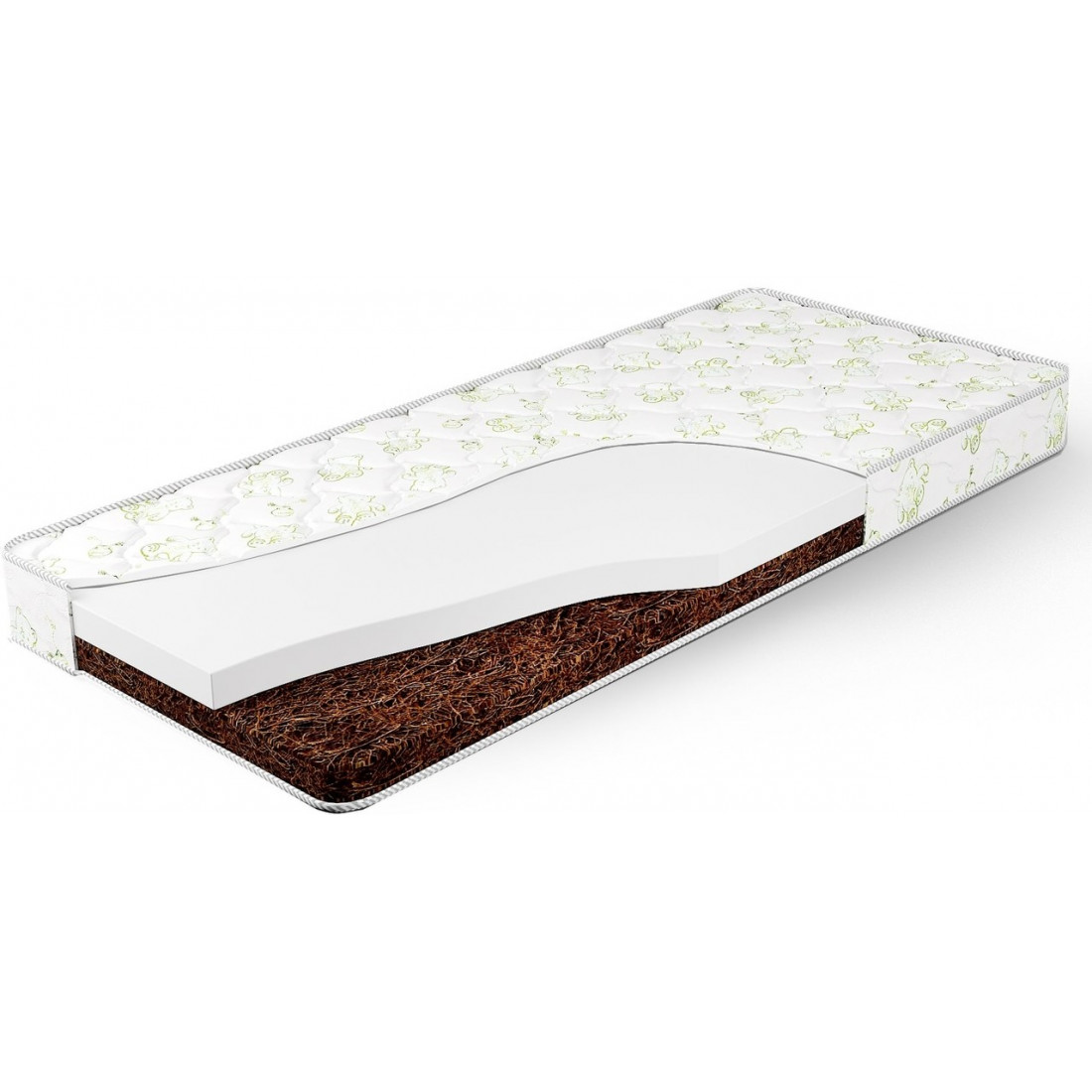Матрас Kids Duos обладает разным уровнем жесткости сторон. Одна сторона выполнена из ортопены – легкого и упругого материала. Другая сторона выполнена из кокосовой койры – жесткого ортопедичного материала, обладающего бактерицидными свойствами. Все слои матраса отлично вентилируются, создавая оптимальный микроклимат изделия.