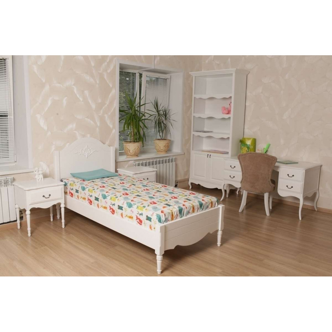 Кровать оснащена ортопедическим основанием для матраса — ламелями.