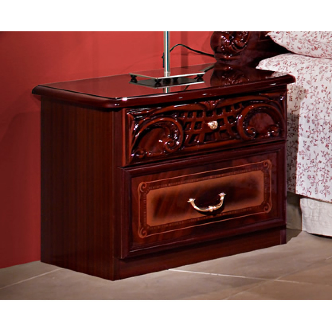 Прикроватная тумба Роза (могано) от Российской фабрики "ДИА мебель". Выполнена в классическом стиле. Она имеет два открывающихся ящика. Маленькая, но очень вместительная и удобная тумбочка удивит Вас своей многофункциональностью. Выполнена в цвете могано и покрыта глянцем. Такая тумбочка подчеркнет чувства стиля любого владельца.