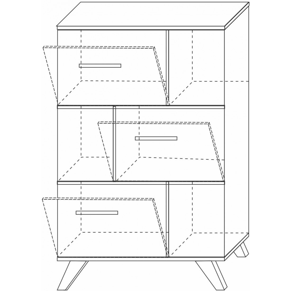 Низкий шкаф с откртыми нишами уникальное решения для спальни или гостиной. Конструкция — шкаф-стеллаж для хранения вещей, книг и посуды.