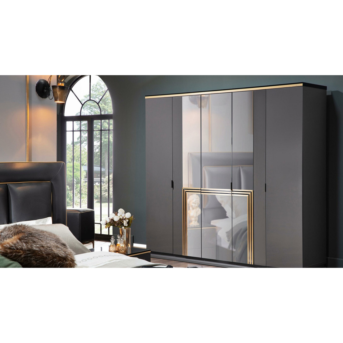 Пятистворчатый распашной шкаф для одежды и белья с зеркалом в спальню Карлино (Carlino) CARL-33