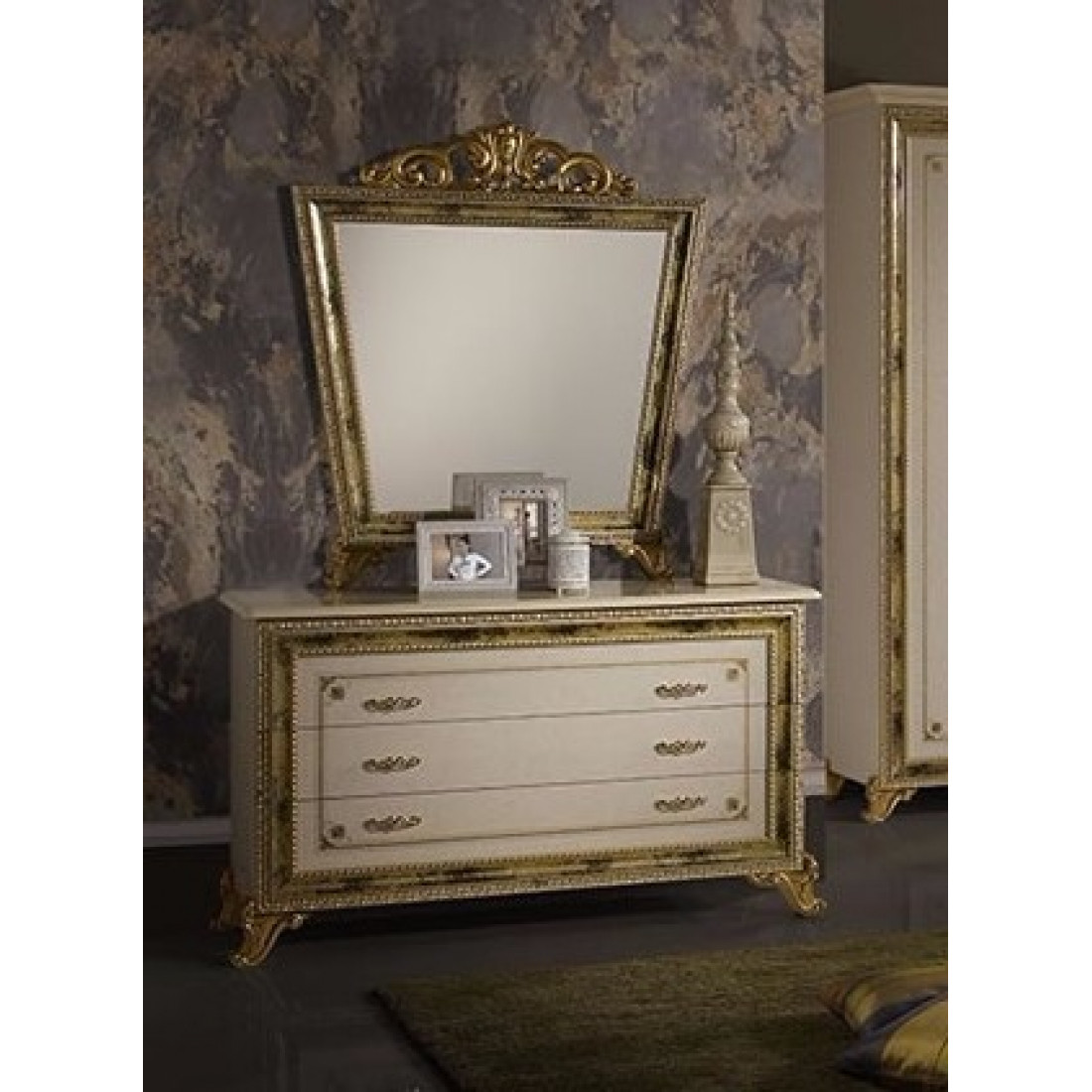 Спальня Катя (беж) композиция 2 от Российской фабрики «ДИА мебель» выполнена в бежевом цвете с  глянцевым покрытием. Такой дизайн поможет вам почувствовать чувство расслабления и насладиться прекрасным крепким сном. Фасады спальни украшены резной, золотой вставкой. Большие просторные зеркала на шкафу и комоде помогут Вам сделать комнату легче и светлее. Классический стиль коллекции "Катя" по достоинству оценят самые изысканные ценители роскоши.