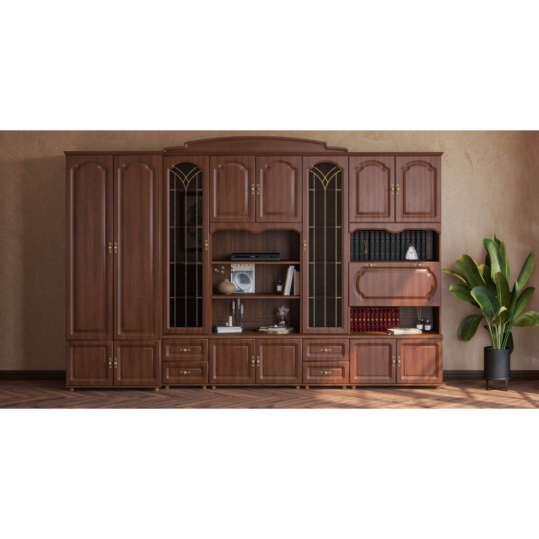 Стенка для гостиной Романтика ВК-09.1, цветовое исполнение орех структурный.