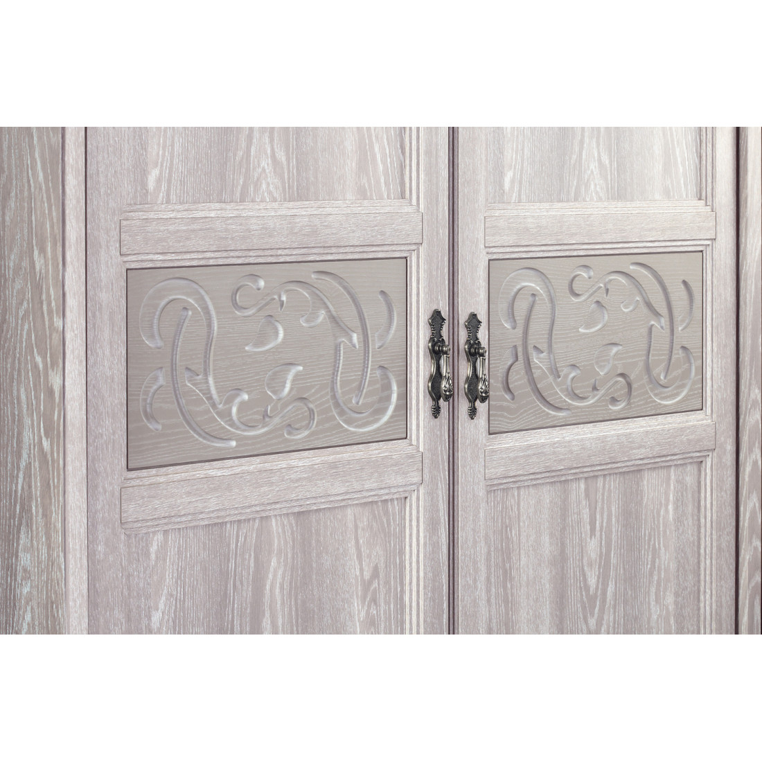 Фасады: МДФ, декор – дуб оксфорд серый, патина, зеркало с фацетом