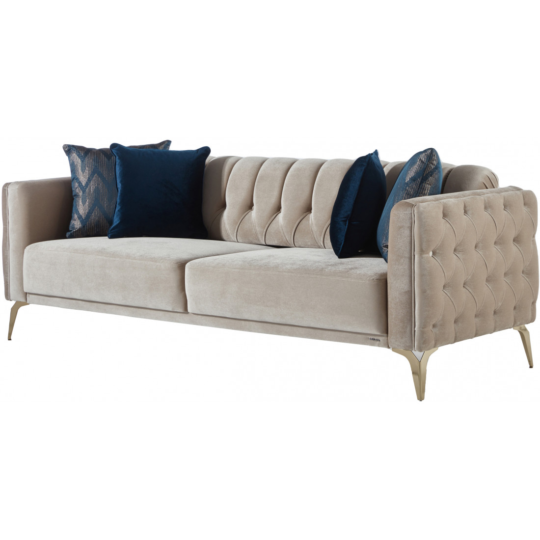 У новинки, на спинке и боковинах присутствует ручная каретная стяжка, придавая ей богатый и благородный внешний вид.